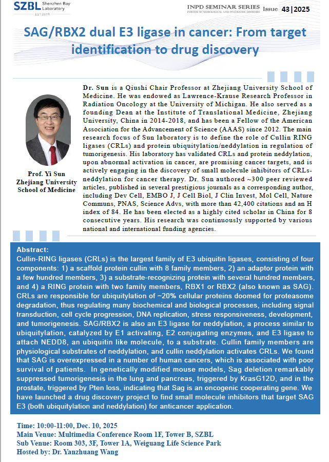【Topic】: SAG/RBX2 dual E3 ligase in cancer: From target identification to drug discovery