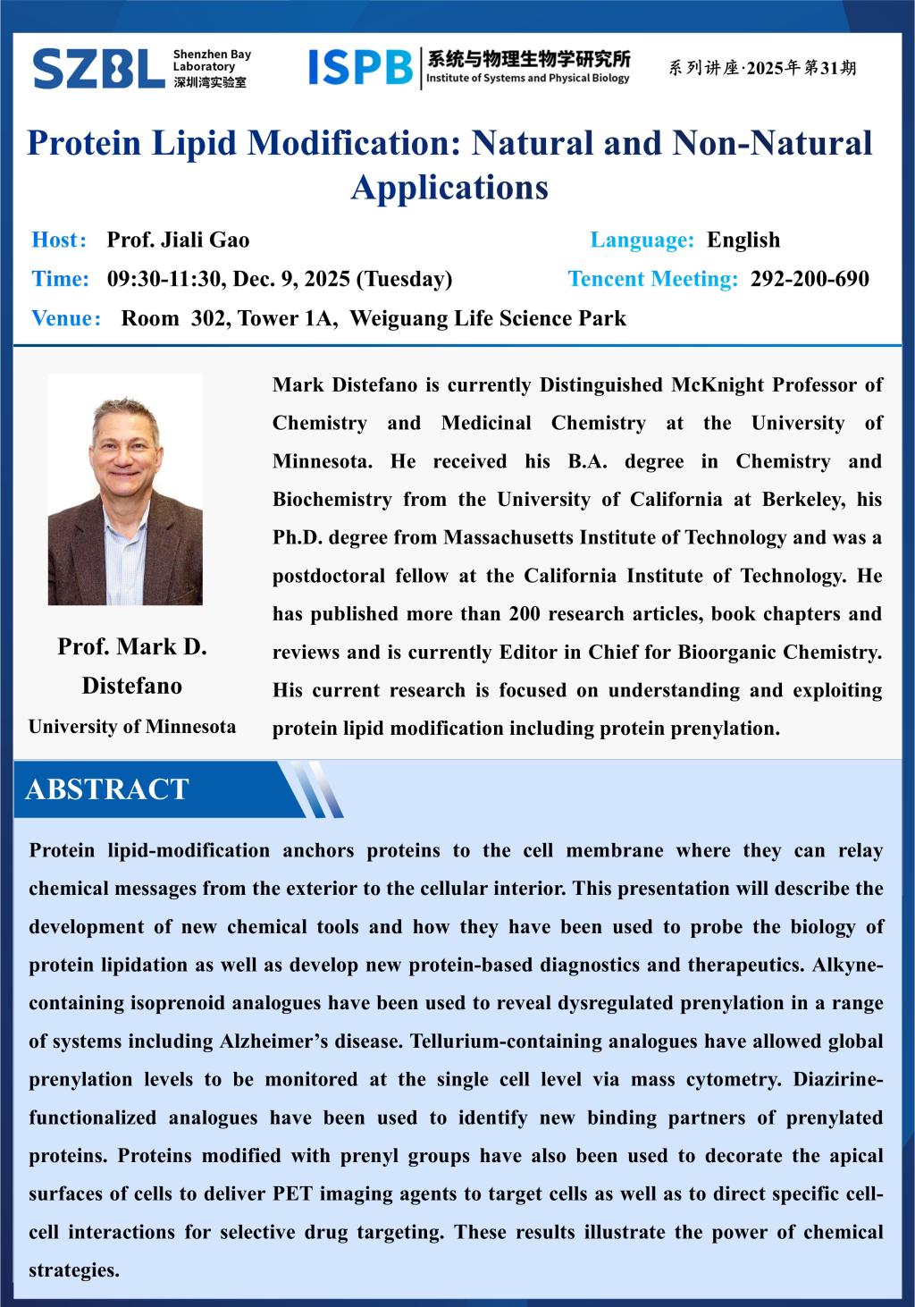 Speaker: Prof. Mark D. Distefano