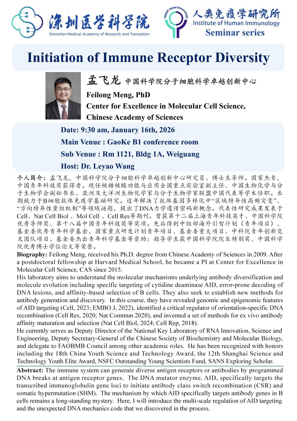 【Speaker】:Fei-Long Meng, PhD