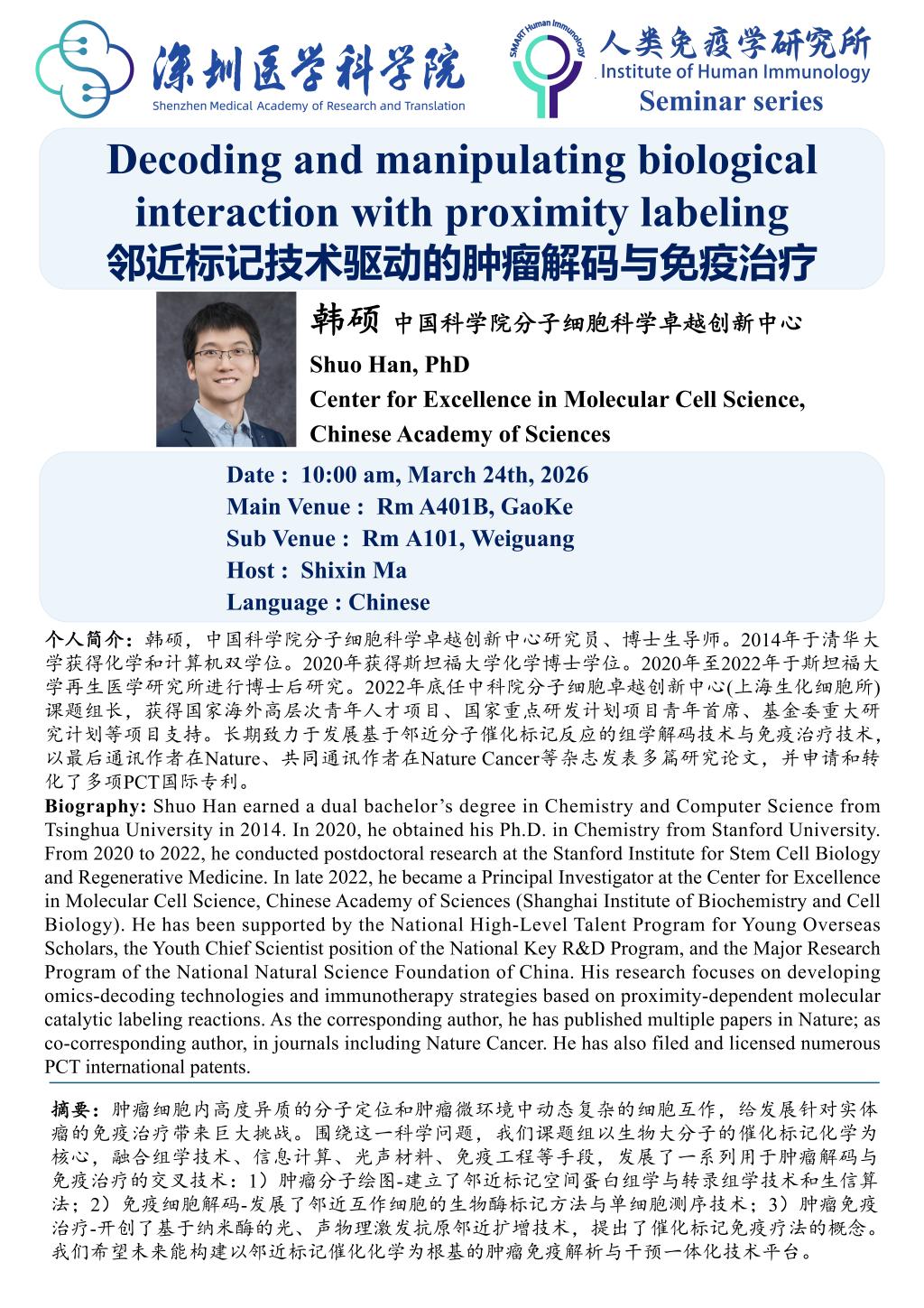 【Speaker】:Prof. Shuo Han